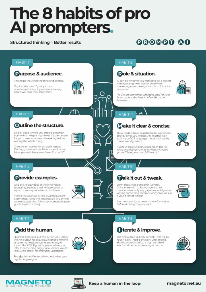 - Set this up in your favourite AI tool so your AI ‘sounds like you’ each time.
