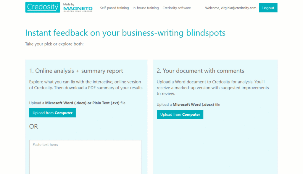 Our trainees use it before courses to get a ‘heads up’ on their major issues before coming to our training. (Handy for revealing the blind spots most people have when it comes to their writing.)